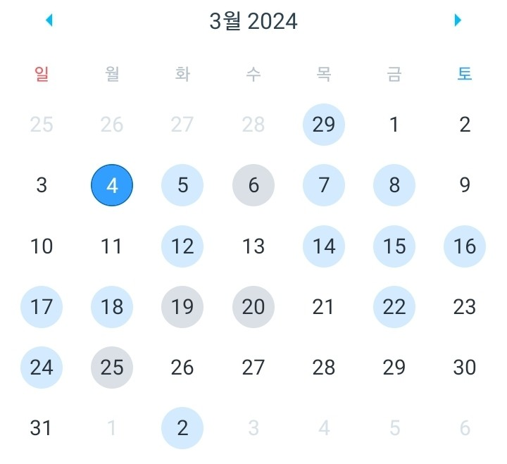 2월 말에 운동에 대한 중요성을 다시 깨달아서 다짐을 다시 한 뒤로 열심히 해보았다. 그 결과 위처럼 빼곡히 운동으로 차인 나날들로 보냈다.