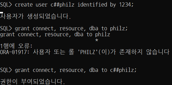 String id = "c##philz"; // 앞에 .. 망할 c##을 붙여줘야 함 ㅠㅠ