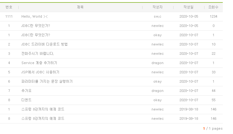 52 - JDBC를 이용해 글 목록 구현하기