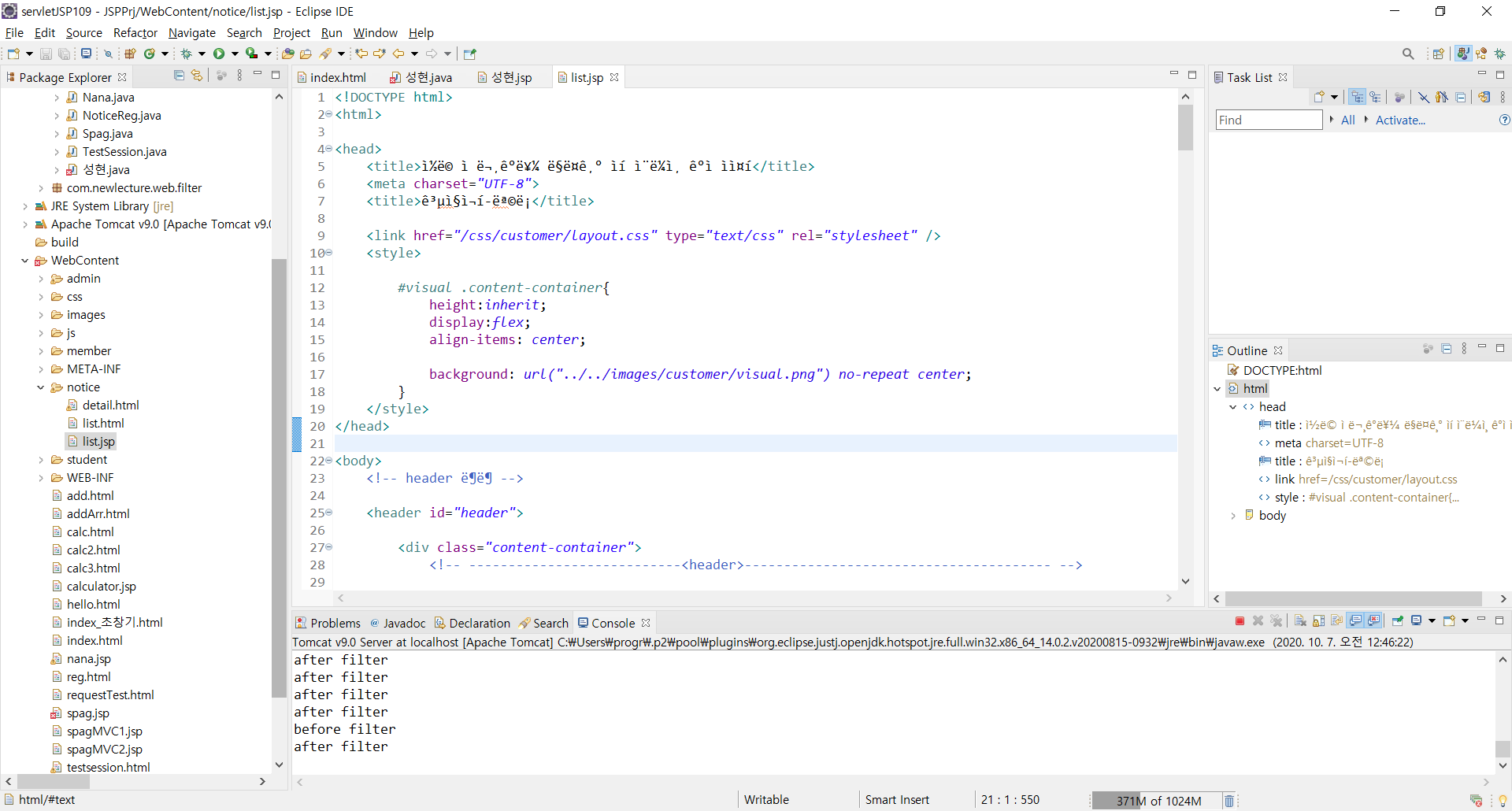list.jsp 가 깨짐..